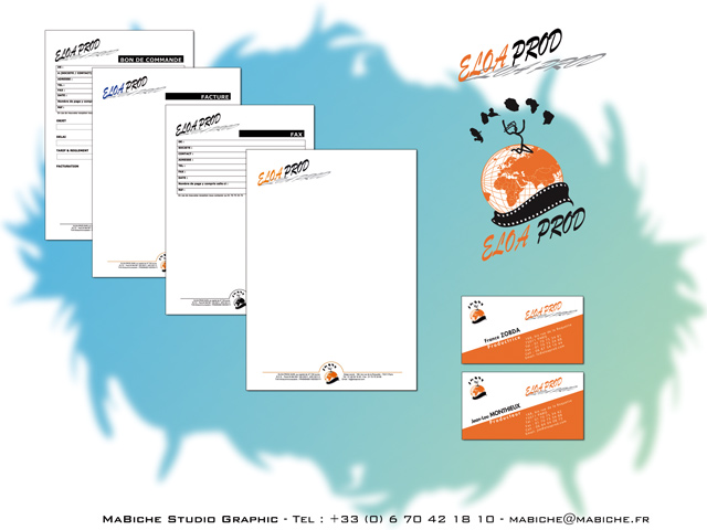 Papier en-tête, fax, bon de commande, facture, carte de correspondance, carte de visite, site internet, invitation